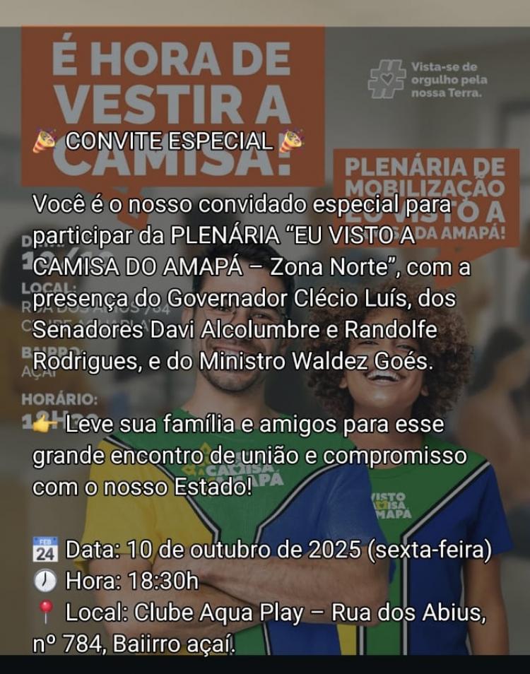 As representações sustentam que o programa “Eu visto a camisa do Amapá” tem sido usado para promover a imagem pessoal do Governador Clécio Luís, com slogans, símbolos e campanhas visuais que associam sua figura à administração pública — conduta que fere os princípios da impessoalidade, moralidade e legalidade.