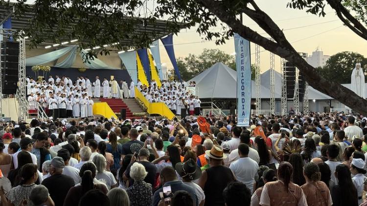 Louvores entoados pela multidão tornaram a atmosfera leve e feliz, unindo as pessoas numa experiência única de paz e compartilhamento da fé.