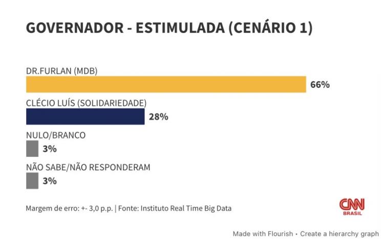 O prefeito de Macapá, Dr. Furlan (MDB), aparece à frente do governador do Amapá, Clécio Luís (Solidariedade), em uma eventual disputa ao Executivo do estado em 2026, segundo pesquisa do instituto Real Time Big Data divulgada nesta terça-feira (9).