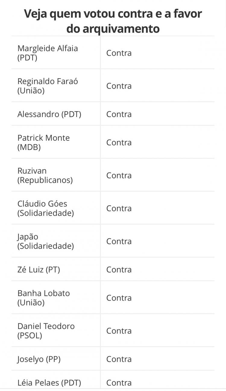 Veja abaixo os vereadores que são aliados do governador Clécio Luis (União Brasil), que votaram contra o arquivamento: